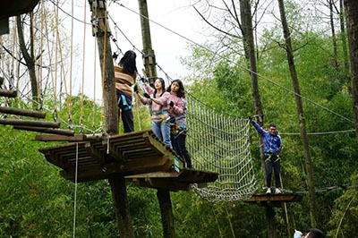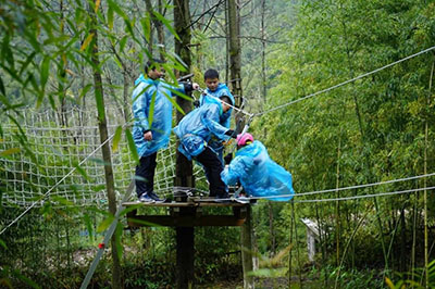 同事們各個身手矯健,在幾米高的障礙上都表現(xiàn)的從容不迫。爬繩索、速滑等都項目都留下了“房總?cè)恕庇赂业纳碛?,在下方的同事也為上面的勇士吶喊助威。每每看到在繩索、速滑上即將要滑落時,大家又都可咬咬牙堅持了下來。
